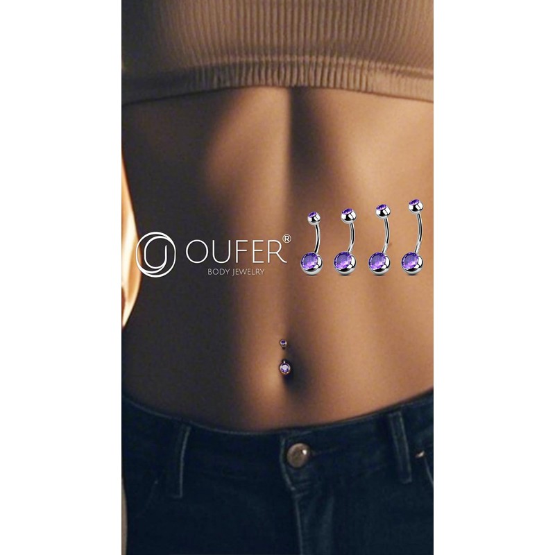 - Design of Belly Bar: The classic curved rod is enhanced with a purple clear cz, adding a touch of sparkle. The internally threaded feature ensures secure and easy fastening, maintaining the ring's stability and aesthetic appeal