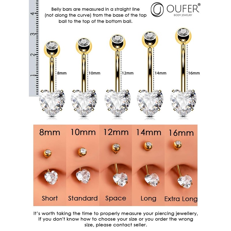 - Style of Belly Button Bar: One package include 1pc 14G titanium gold 8mm belly bar, heart-shaped clear cz, a piece of sophistication to elevate your look, adorn yourself with a touch of glamour and make a stylish statement.
