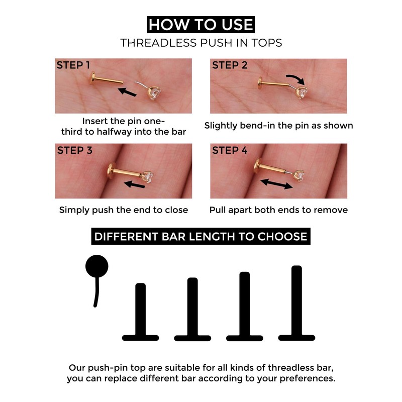 - Cartilage Earring Design: This cartilage stud earring has a safe, threadless design made of 316L stainless steel, which is decorated with clear cubic zirconia. Its easy push/pull fit ensures comfort and convenience for everyday wear