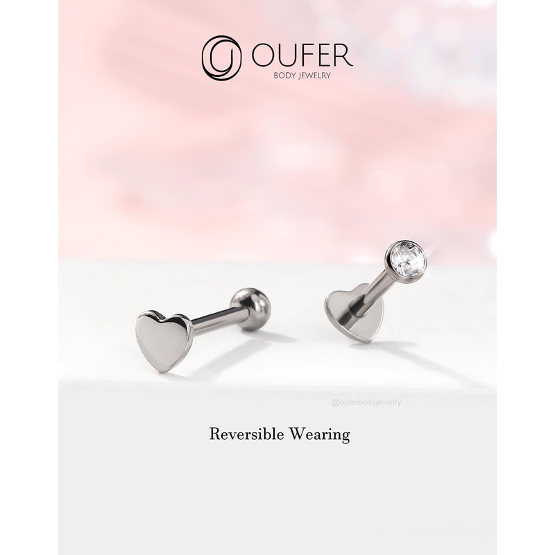 OUFER 2Pcs Conch Piercing Jewelry, 16G G23 Solid Titanium Push in Earring Stud Flat Back Star Heart Shaped Tiny CZ 3MM Silver Helix Cartilage Conch Lobe Earrings for Women Men-12MM