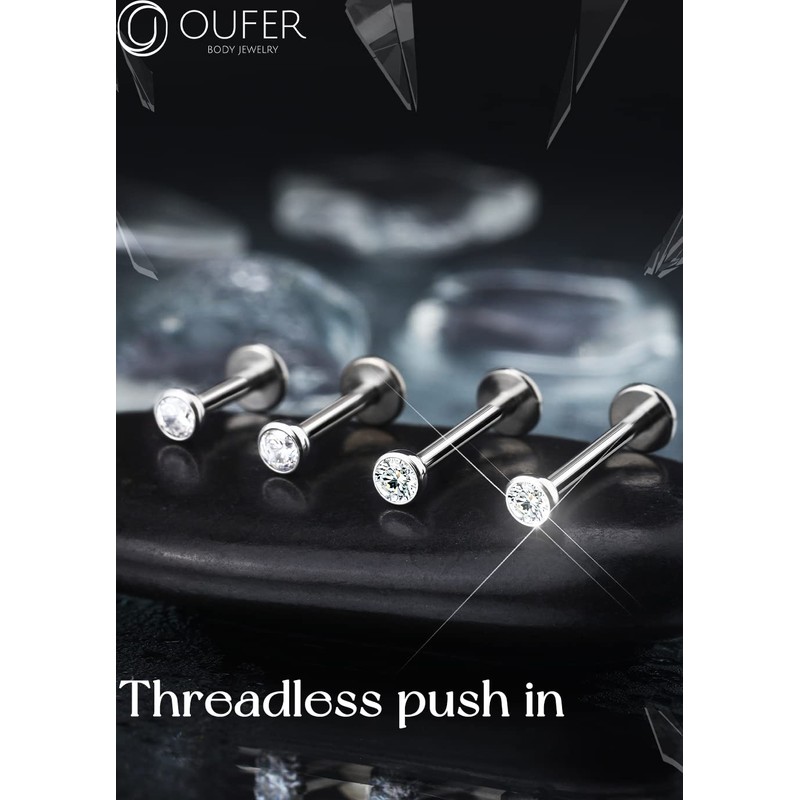 - Easy to use: threadless design, press the pen directly into the straight labret bar,Threadless Labret uses the tension between the end and the shaft to fit and stay together. The end has an insertion pin which is slightly bent when inserted into a straight shaft, stronger bent = firmer