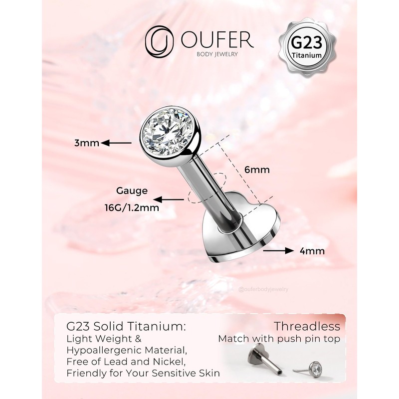 - You will receive 1pc 16G titanium tragus earrings with clear cz on the top