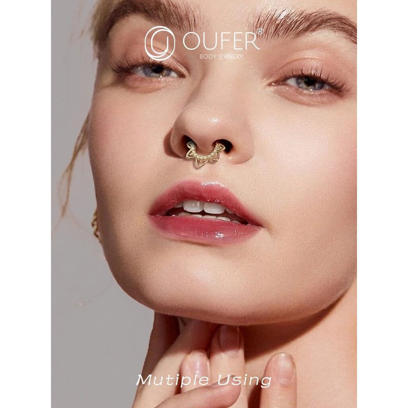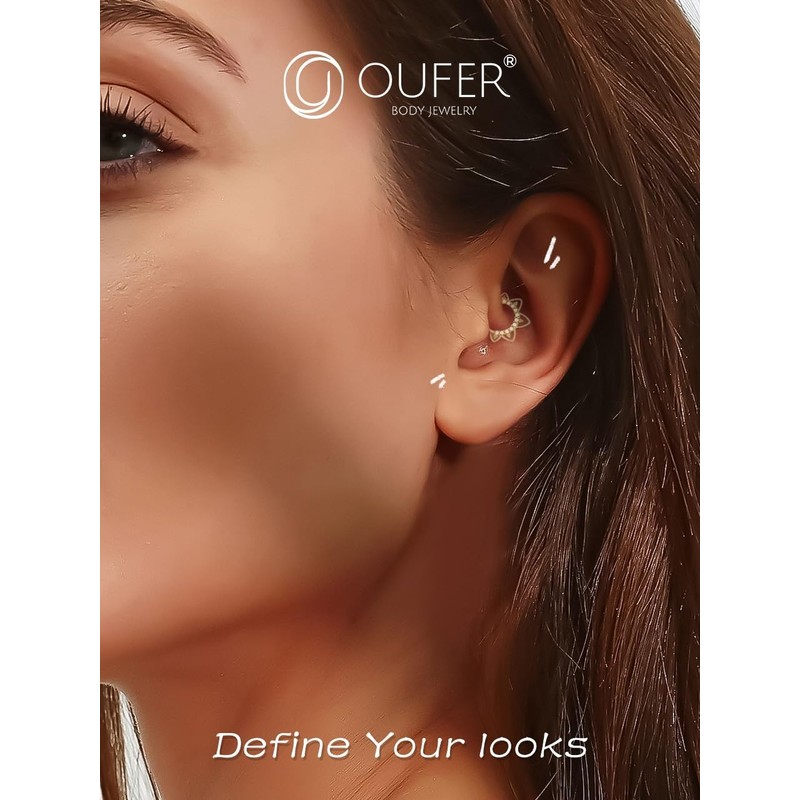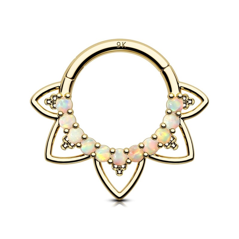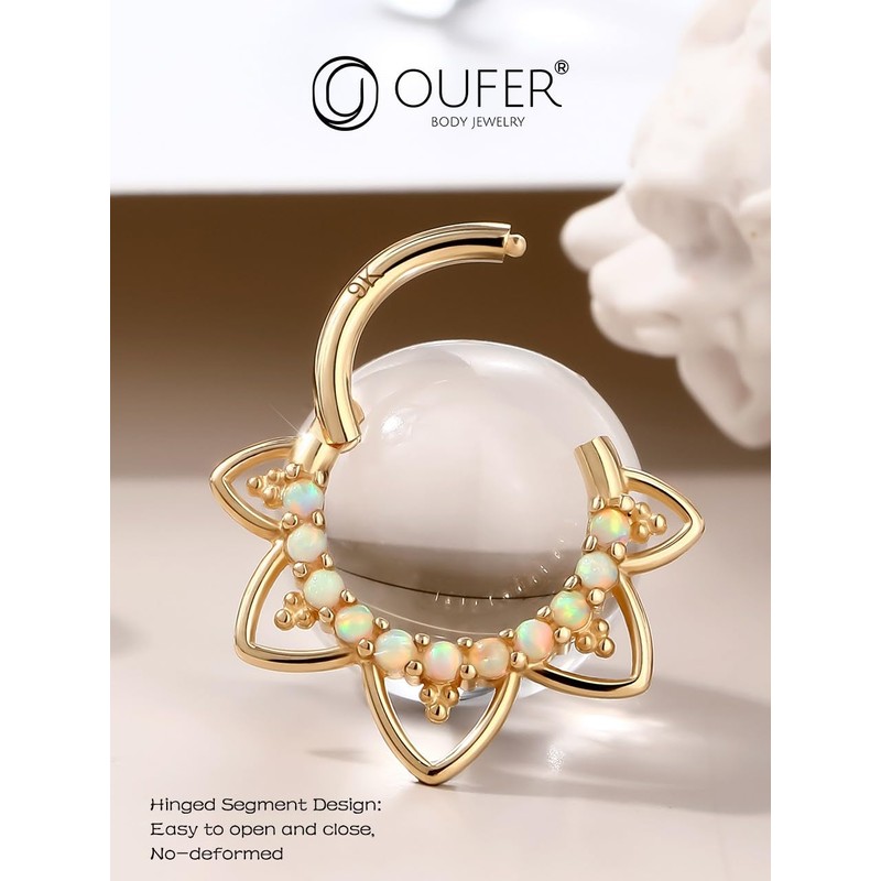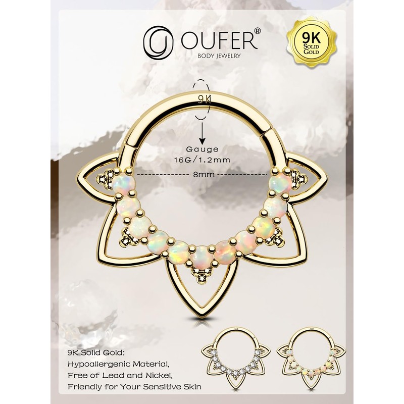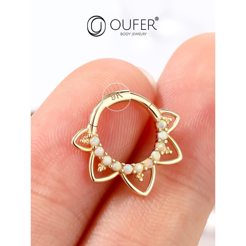 OUFER Daith Piercing Jewelry, 9K Daith Earrings, 16G Opal Design Daith Hoop Earring, Helix Cartilage Septum Piercing Jewelry