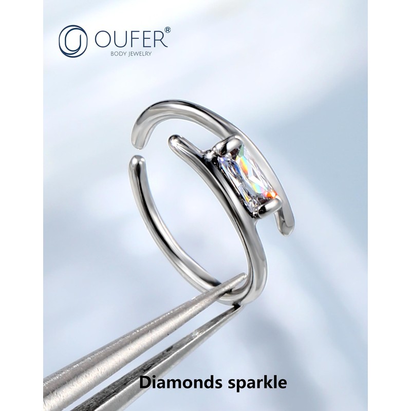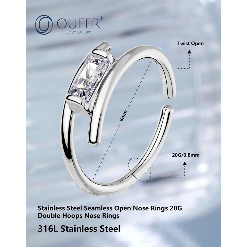 OUFER Nose Rings 20G, Open Double Hoop Nose Rings 316L Stainless Steel Minimalism Sparkling CZ Nose Rings for Women Men-8MM