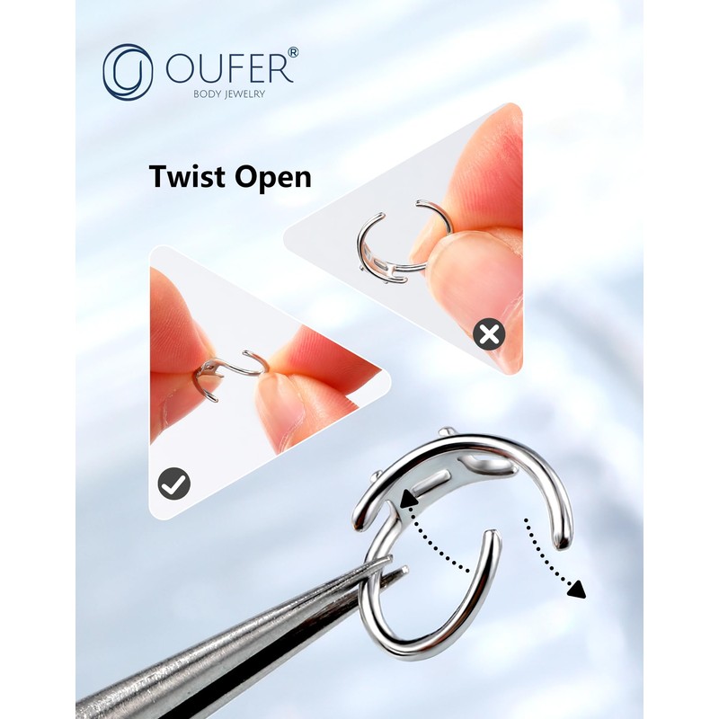 OUFER Nose Rings 20G, Open Double Hoop Nose Rings 316L Stainless Steel Minima...