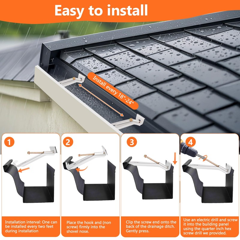 • 【Sleek and Clean Appearance】 Unlike traditional gutter spikes, these hidden gutter hangers are installed out of sight, offering a cleaner, more appealing look. Their discreet design enhances your home’s curb appeal while providing unmatched support for your gutter system.