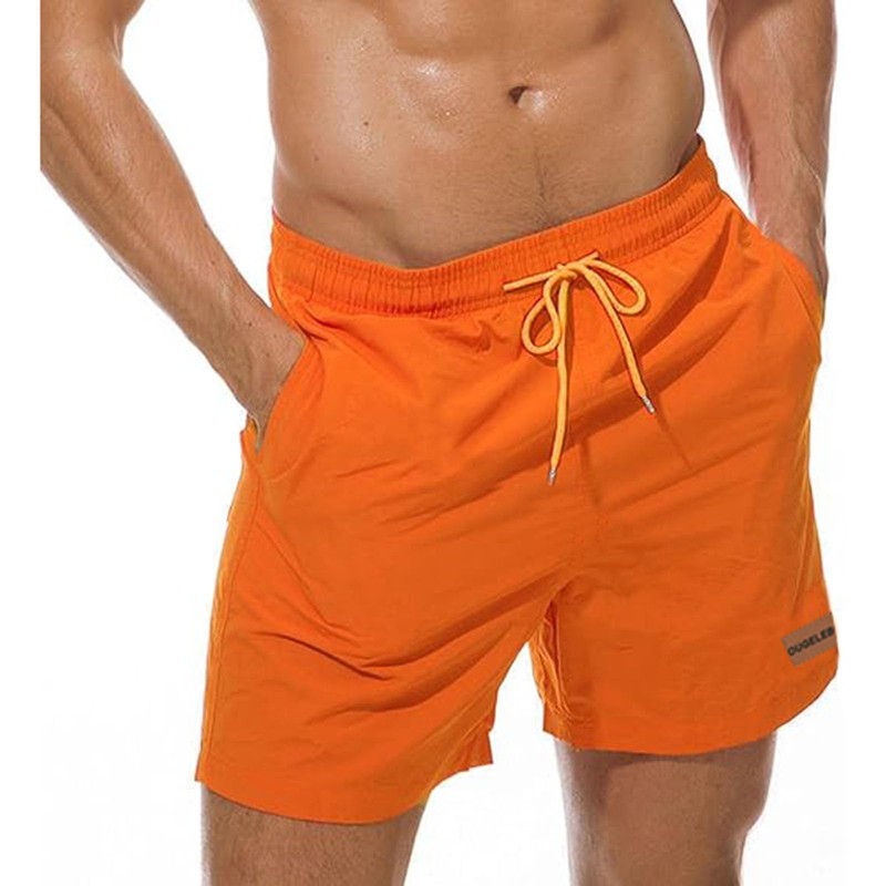 Ougelebo Men's Swimming Trunks with Zip Pocket, Quick-Drying, orange