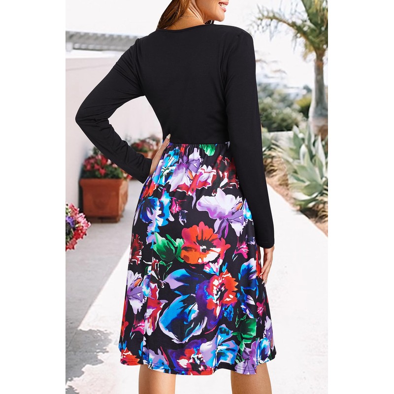 OUGES Womens Long Sleeve Fall Floral Maternity Dresses Nursing Gown Breastfeeding Clothes(Black Floral1,M)