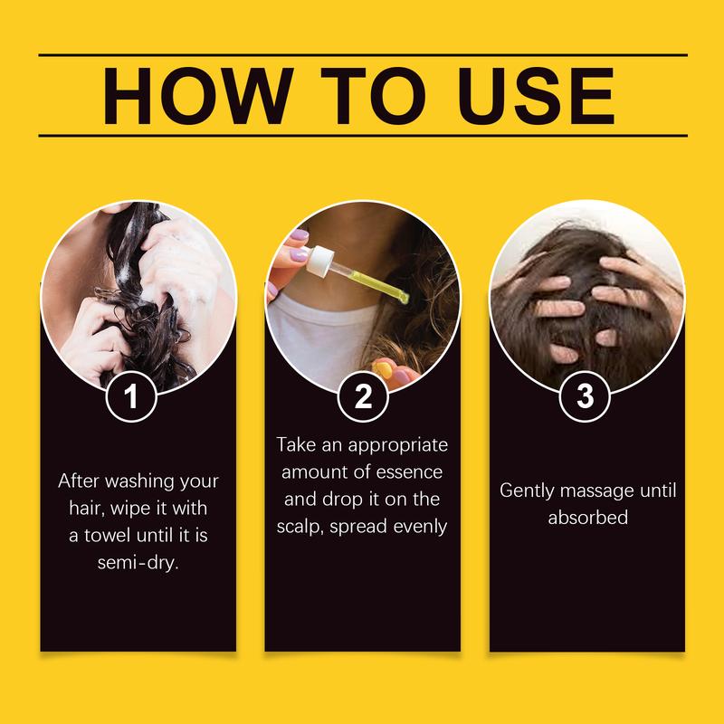 Hair Regrowth Treatment Oil: This Hair Essece supports the strengthening of the hair root and can make the blood flow of the scalp. Make perfectly smooth hair. And easy to manage and healthy-looking Hair Growth: Encourages healthier hair growth, good for stopping thinning hair and treating alopecia, make it grow faster and thicker Hair Repair: Hair Serum helps repair damaged hair's surface, lock in moisture & shine and control frizz. Repairs, softens and strengthens dry, brittle, frizzy and damaged hair NATURAL INGREDIENTS: Hair Growth Oil using Ginger King, Ginseng, Polygonum, Grape Seed Oil as a raw material, they can promote the healthy development of hair and scalp, and the hair becomes supple Long-Term Persistent Use Can Be Hair Growth :2 or 3 Times fast Speed of hair growth hair, issuance, prevent hair loss; let the hair follicles to grow new hair root.Raise hair make hair smoother