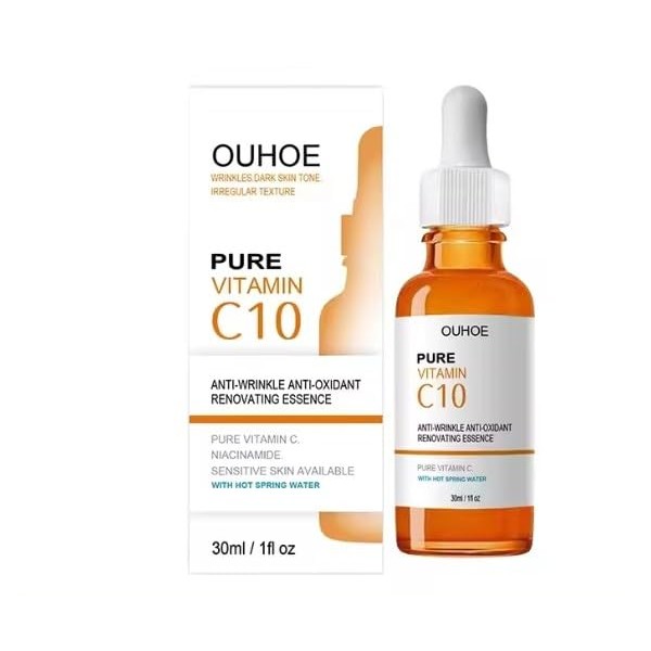OUHOE Srum de Vitamina C10, 30ml, Antioxidante Antiarrugas, con Glicerina y Agua de Manantial, para Piel Firme y Radiante