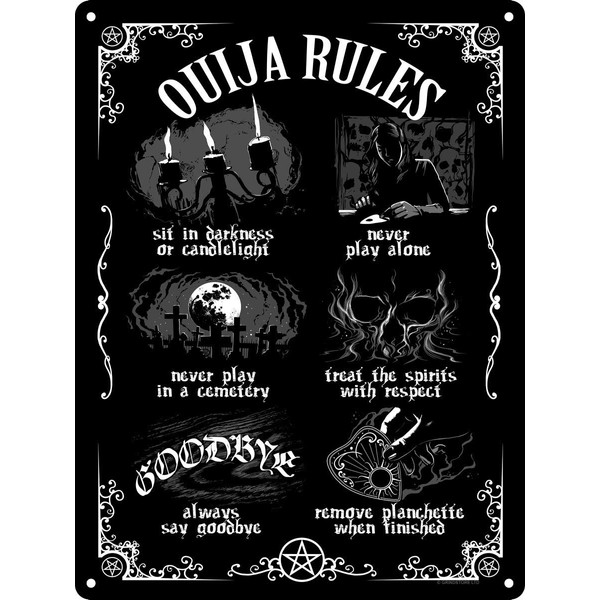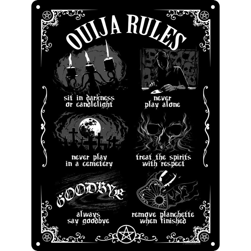 Ouija Board Rules Mini Black Tin Sign 15x20cm