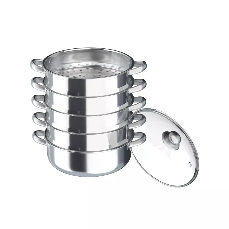 OUKANING 5tier Steamer Cookware Pot Stainless Steel Pot Stainless Steel Food Steamer &Lid