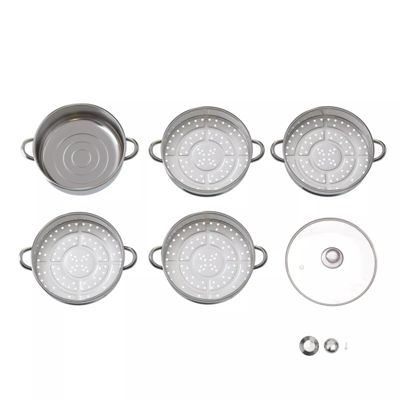 Delicious Maker: The pot body is closely connected to the grate, so the steam flow inside is stronger, which can preserve the nutrition of food and steam their delicious tastes. Five separate steamers keep food from stringing together.