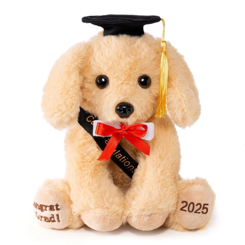 Oukiwi 8 Inch Graduation Plush Stuffed Animal Class of 2025 Brown Puppy Dog
