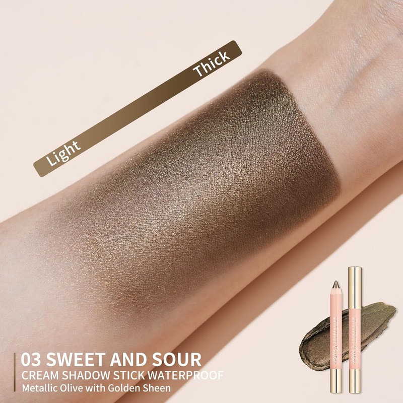 Oulac Eyeshadow Pen, Olive Green Eyeliner, Waterproof, Lasts 24 Hours, Metallic Finish, Vegan 3.6 g (03) Sweet and Sour