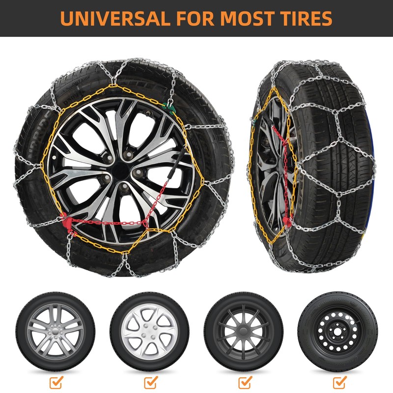 - 【Safe and Reliable】Professional snow chains are suitable for SUVs, RVs, ATVs, pickup trucks, and other vehicles.