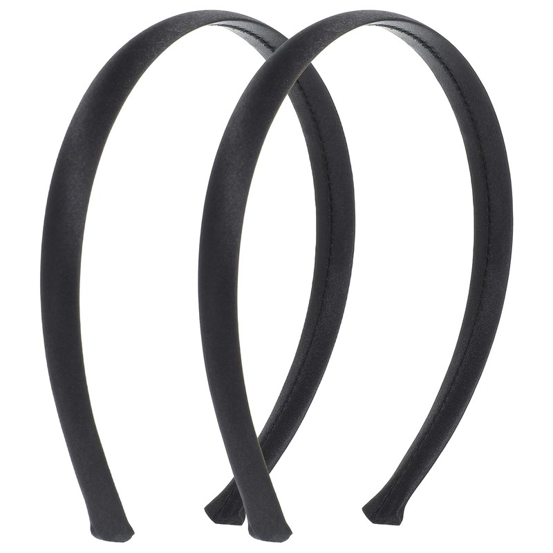 Ouligay 2pcs Black Satin Headbands for Women, Fashion Black Head Band, Non-Slip Plain Hair Bands DIY Hair Accessories Perfect for Cosplay, Yoga and Daily Wear