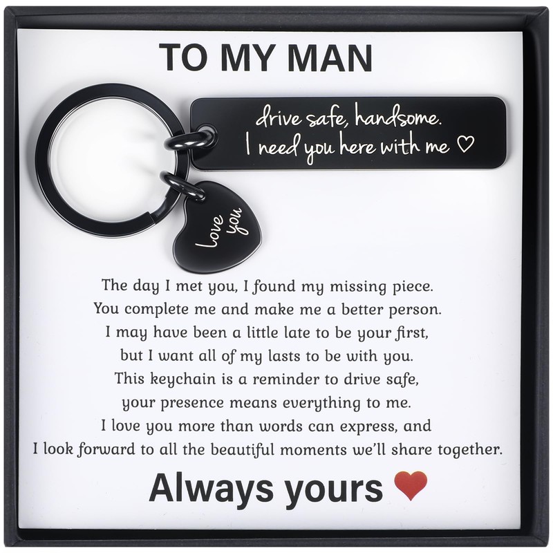 - Thoughtful Reminder: The drive safe keyring for him is a meaningful reminder for your loved on the road, the safety of every driving is so important, thoughtful gifts for him, boyfriend, fiance, husband, dad or son, gifts for bf, gifts for husband birthday, anniversary gifts for husband, boyfriend gifts, romantic gifts for him, small gifts for boyfriend, sweet cute gifts for boyfriend, valentine gifts for men, mens valentines day gifts, valentines gifts for boyfriend