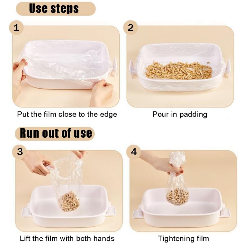 Made from clear plastic, these liners offer the advantage of easy visibility. You can quickly check the waste level without disturbing your pet. The clear material also helps contain odors, keeping your home fresh and clean. Plus, since they're disposable, you can simply toss them out after use, eliminating the need for scrubbing and disinfecting.