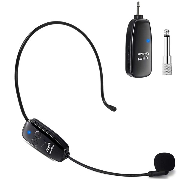 Oulou Wireless Microphone, Headset Microphone, UHF, 50 Meter Transmission Range, Automatic Pairing, Volume Adjustment, Ear Mount, Stage Portable Loudspeaker, Lightweight, Supports Loudspeakers, No