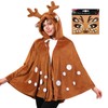 OUMDON OUMDON Rentier Karneval Kostüm Damen: Braunes Elch Cape mit Glitzer Gesichtstattoo - Reh Damen Kostüm für Karneval Fasching und Weihnachtsfeiern (Reh Cape)
