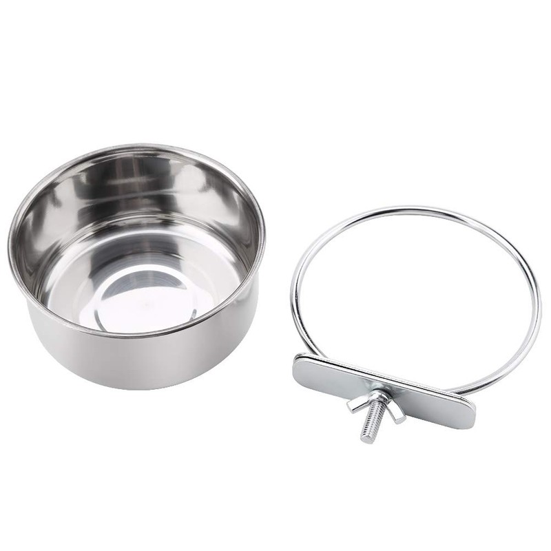 Oumefar Comedero de Jaula de pájaros de Acero Inoxidable Cuenco de alimentación de Agua para Loros Tazas de alimentación para Loros y pájaros con Abrazadera para Animales pequeños(M)