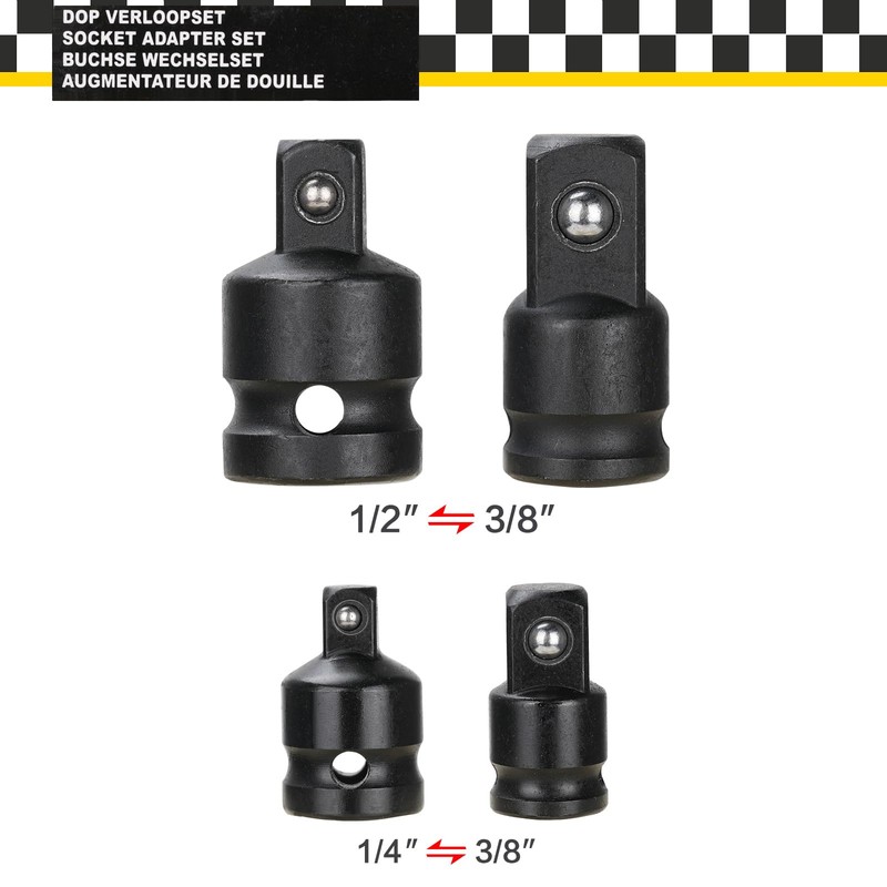 - 【Wide Application】This socket adapter uses our high quality socket adapter set, you can easily switch between different sizes, from 1/4" to 3/8" and from 3/8" to 1/2". Discover the flexibility you need to work effectively.