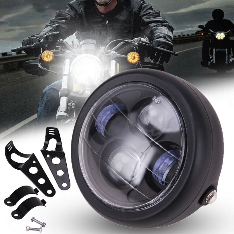 Motorcycle Cafe Racer Bobber 6.5 Inch Led Headlight Spiral White Side Mount Brac