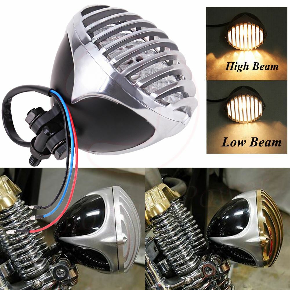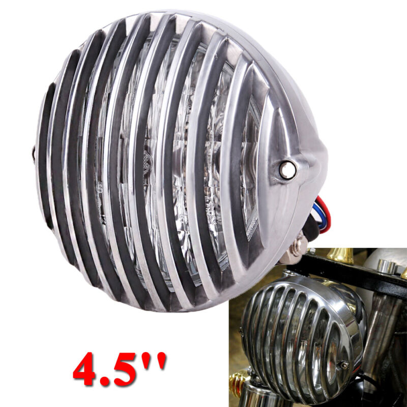 Motorcycle 4.5 Retro Round H4 Headlight Chrome For Harley Bobber Chopper Custom