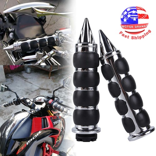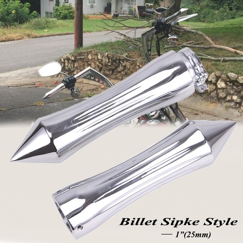 Spike Chrome 1" Motorcycle Handlebar Hand Grips For Harley Honda Kawasaki Suzuki