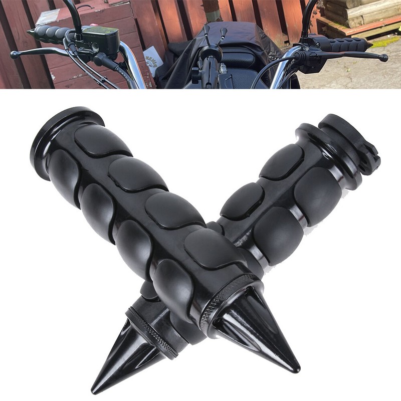 Black 1" 25mm Spike Motorcycle Handle Bar Hand Grips for Harley Cruiser Chopper