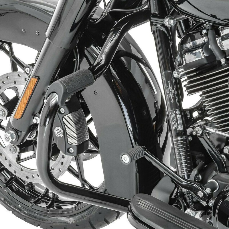 - This engine guard is custom fit to the motorcycle of 2009-2024 Harley touring models,it is made with heavy duty steel and made by Black plated,durable and safe for riding, in addition, Black surface,look smooth and perfectly match to your motorcycles.