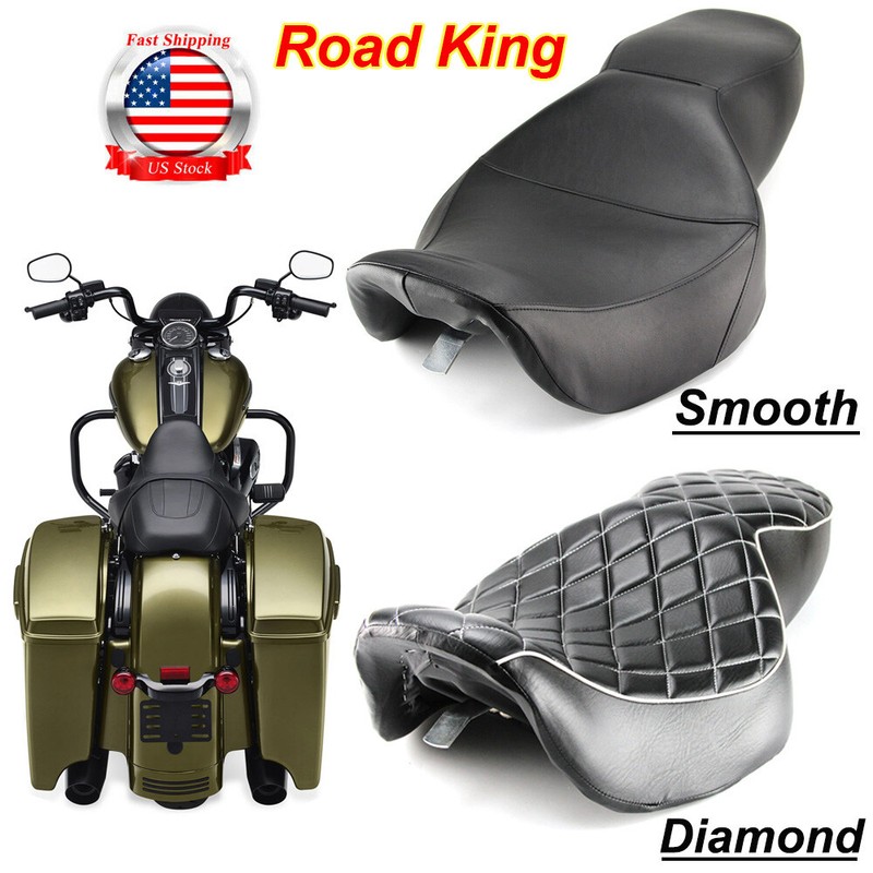 For Harley Road King EFI FLHR FLHP Two up Driver Passenger Cushion Seat Black US