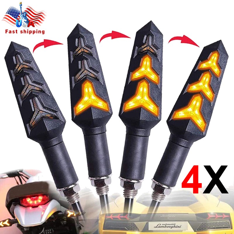 4x Sequential Flowing LED Motorcycle Turn Signal Indicator Lights DRL Brake Lamp