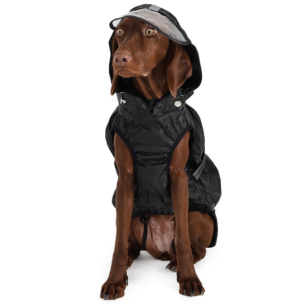 - REFLECTIVE STRIPS & DETACHABLE EVA HOOD FOR VISIBILITY - Reflective strips on the back keep your dog visible during evening walks. The detachable hood features a transparent EVA brim that won’t block your dog’s view - ideal for walks, travel, or unexpected showers. This waterproof raincoat for dogs combines protection and visibility in all conditions.
