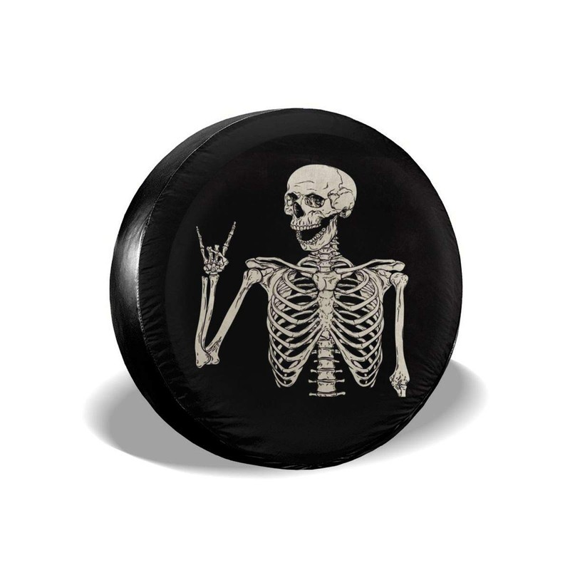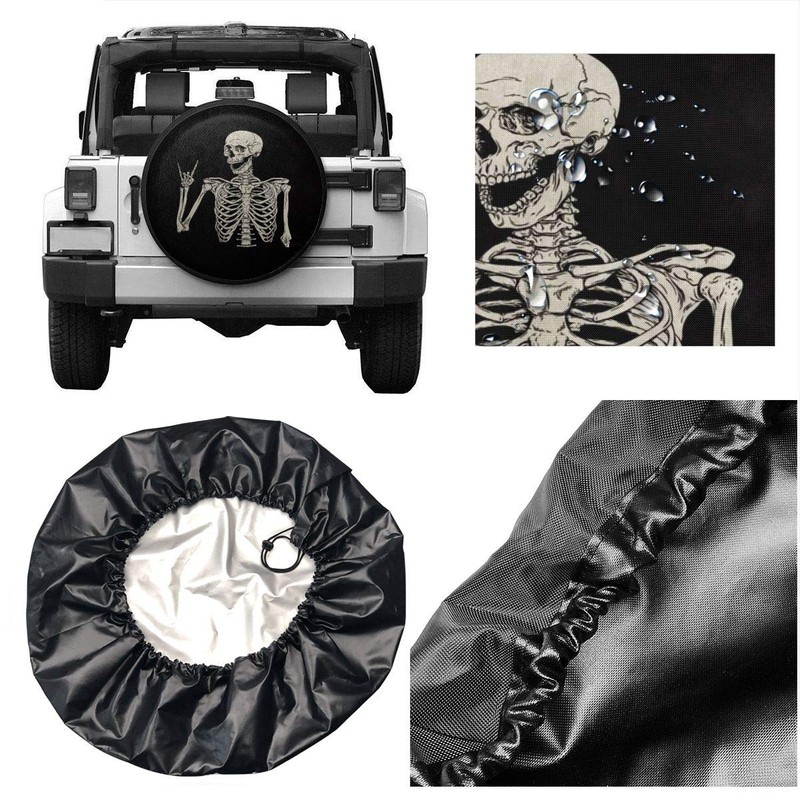 Ouqiuwa Spare Tire Cover Rock and Roll Skeleton Skull Boho Hippie Universal Wheel Covers for Jeep Trailer RV SUV 14 Inch for Diameter 23-27 Inch