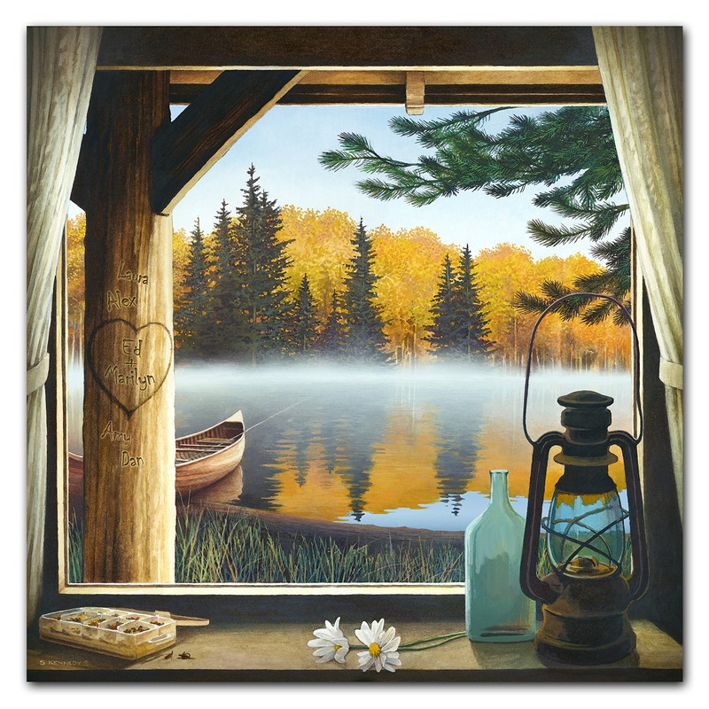 Our Cabin Getaway Large - Cabin Lakeshore Window Romantic Personalized Art for a Wedding, Anniversary, or Gift!