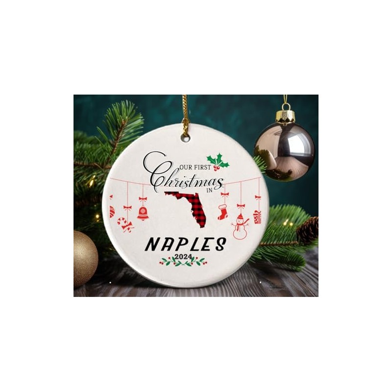 Our First Christmas Ornament 2024 in Naples Florida Ornament Tree Decorations Housewarming New Home Keepsake 3" White