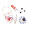 - Includes: flashlight, 3 projector attachments, unicorn banners, 2 biscuits, a bottle of milk and a plate.