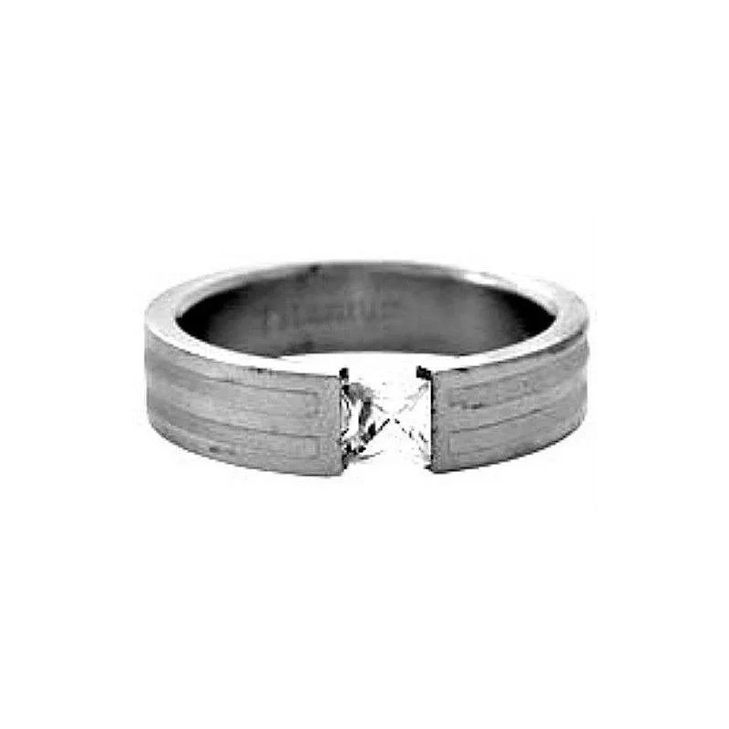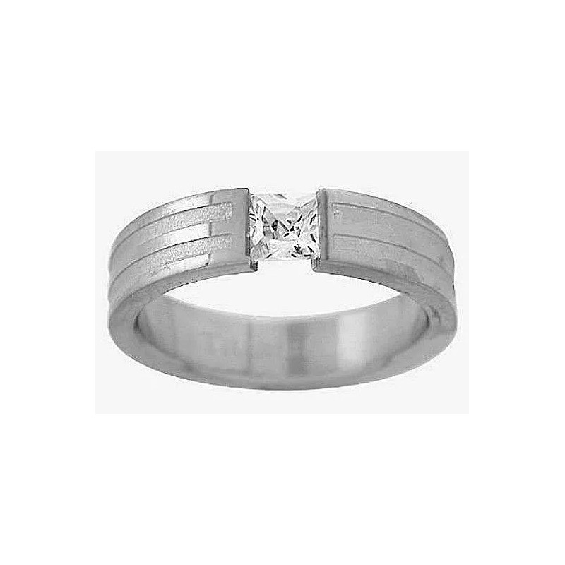 Our Own TITANIUM Matte Polished Tension RING with 5x5mm Square CZ and Accents, size 5