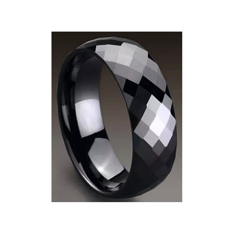 Our Own TUNGSTEN CARBIDE Black Plated Faceted RING BAND, size 12 - NEW - in Gift Box!