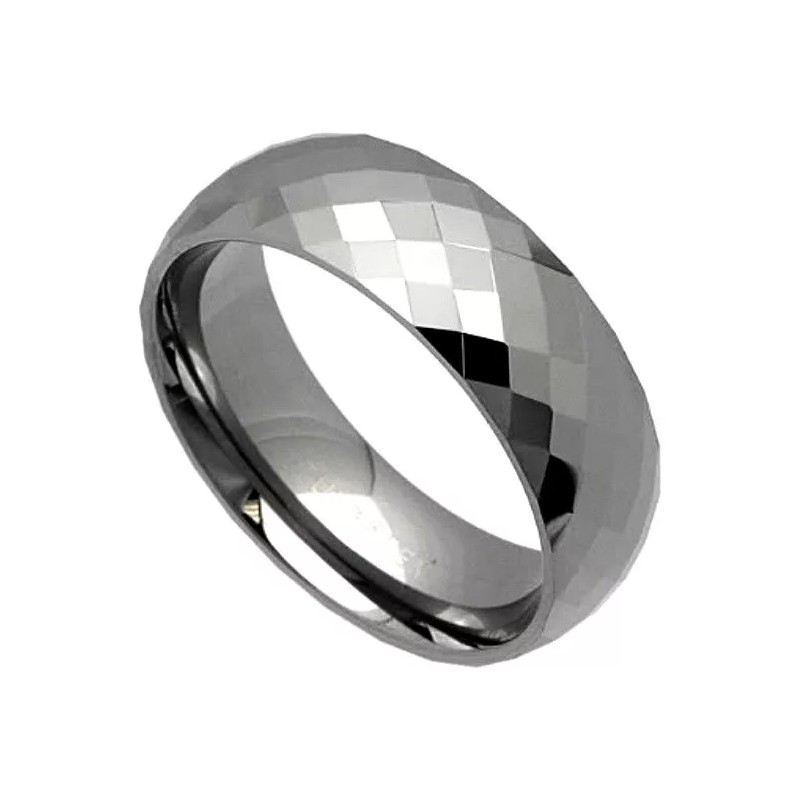 Our Own TUNGSTEN CARBIDE Highly Polished Diamond FACETED 8mm Band Ring, size 9