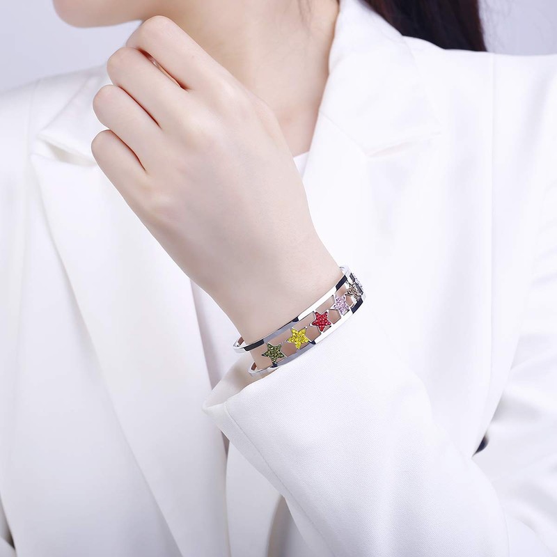 Ouran Star Bangle Bracelet for Women, Charm Rose Gold and Silver Plated Stainless Steel Cuff Wrist Bracelet with Crystal Best Gift for Friends