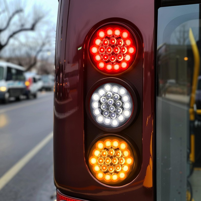 • [BRIGHT LIGHTING]--Our Backup Reverse Lights Equipped with 3 Color Round Trailer Lights with better heat distribution, no glare, brighter and more energy-efficient than halogen bulbs, bring maximum visibility and safety even in harsh weather.