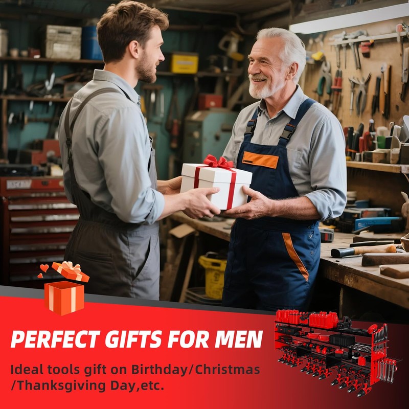 - 【PERFECT GIFT FOR MEN】This drill organizers and storage is ideal for garages,workshops,tool rooms,basements,workshops, factories and warehouses,A thouhtful gift for Men,father, husband, colleagues, boyfriend, brother on birthdays, Christmas, Thanksgiving Day or any special holidays. This sturdy battery powered tool storage is a must-have for any DIY enthusiast or professional seeking efficient storage solutions.