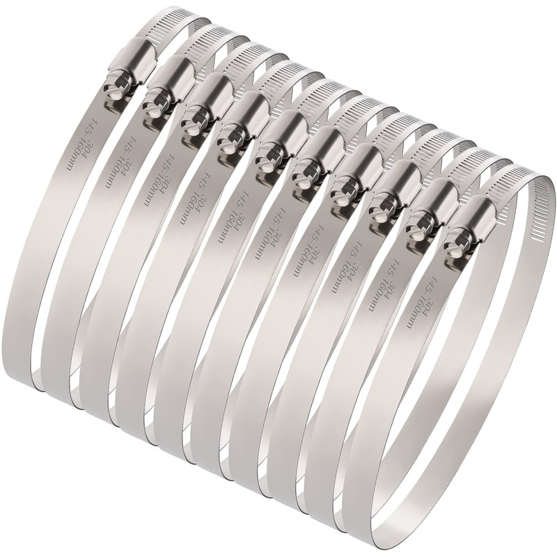 - 【Flexible Adjustable Standard Size】Our 10-pack of 6-inch worm gear hose clamps features flexible adjustability,freely adjustable size range is 145-160mm,suitable for hoses with an outer diameter of 5-3/4”-6-5/16”(145-160mm).The width of 12.6mm and thickness of 0.6mm.The size standard has no deviation,which can meet your daily needs for products of different sizes