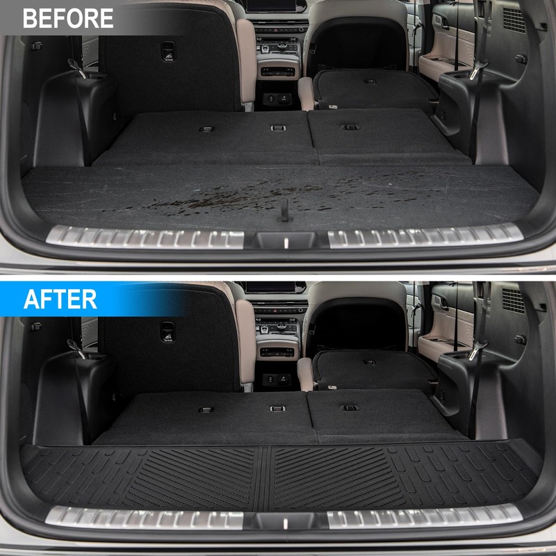- 【Custom Fit for 2020-2025 Hyundai Palisade】Stop wasting time trimming generic mats! Our trunk liner is laser-measured to hug every contour of your cargo area. You can complete installation in seconds, no tools needed. Please double-check your vehicle model year before ordering! Designed exclusively for Hyundai Palisade 2020-2025, it delivers full coverage.