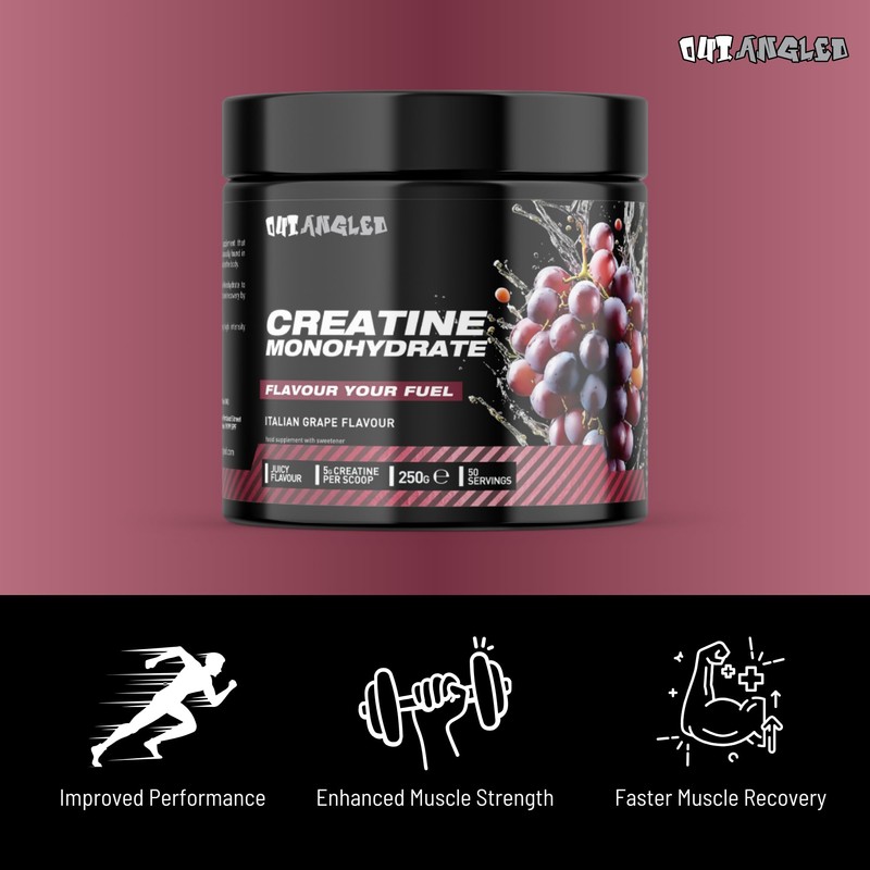 Out Angled Creatine Monohydrate Powder, Italian Grape, 50 Servings, Micronised for Easy Mixing, Muscle Growth, Recovery and Strength Performance