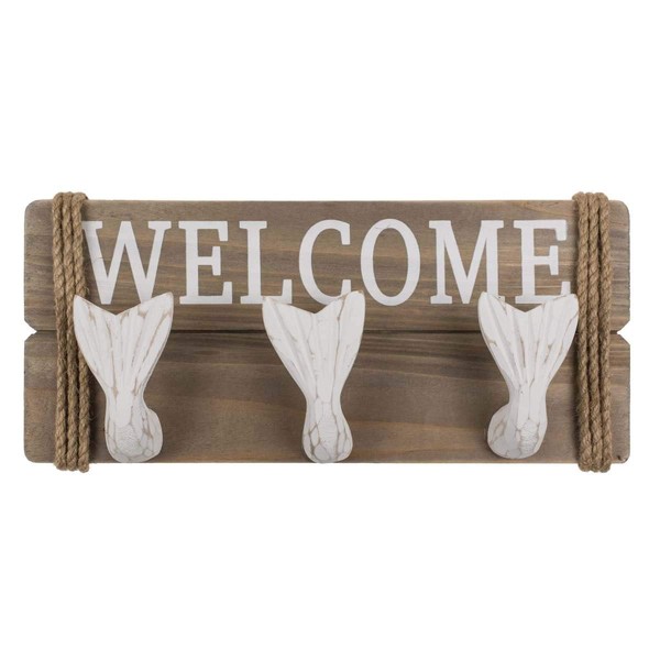 Out of the blue Wall-Mounted Coat Rack Maritime Wooden Sign Welcome with 3 Hooks, Vintage Style Hook Rack as a Coat Rack, Key Rack or Simply Stylish Wall Hooks, 30 cm Wide