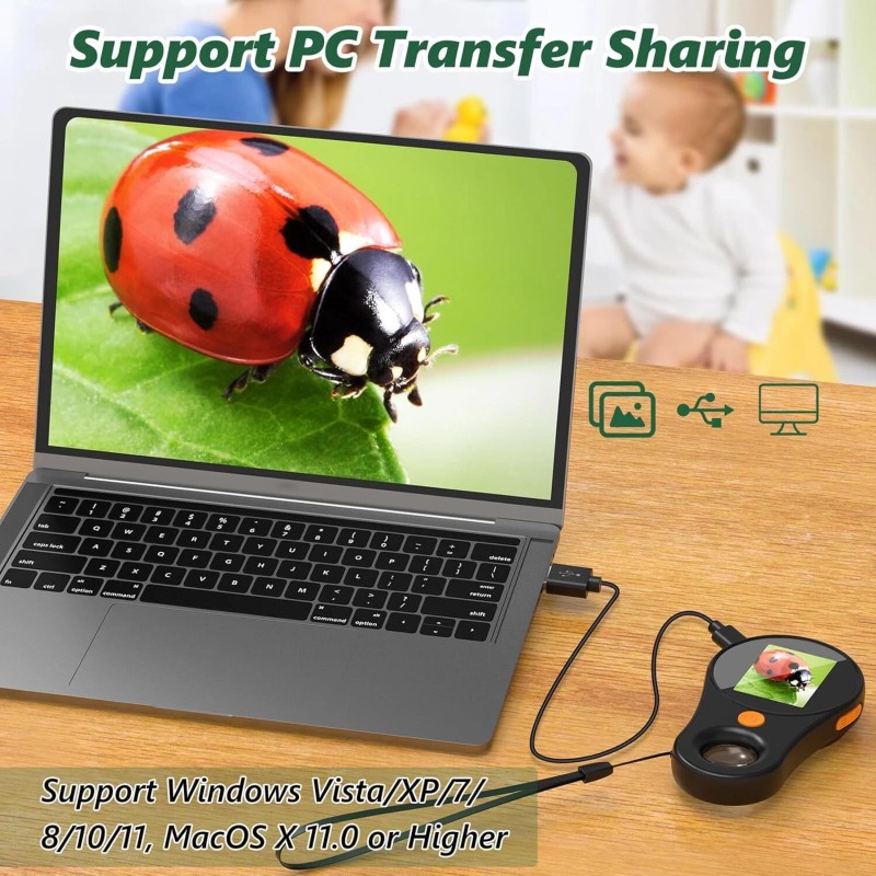 Ergonomic Design: The dimensions of 12.7 x 2.5 x 7.6 cm and a weight of only 136 g, this digital microscope fits easily in a child's pocket or backpack, making it ideal for adults, students and young learners and a great gift for children.